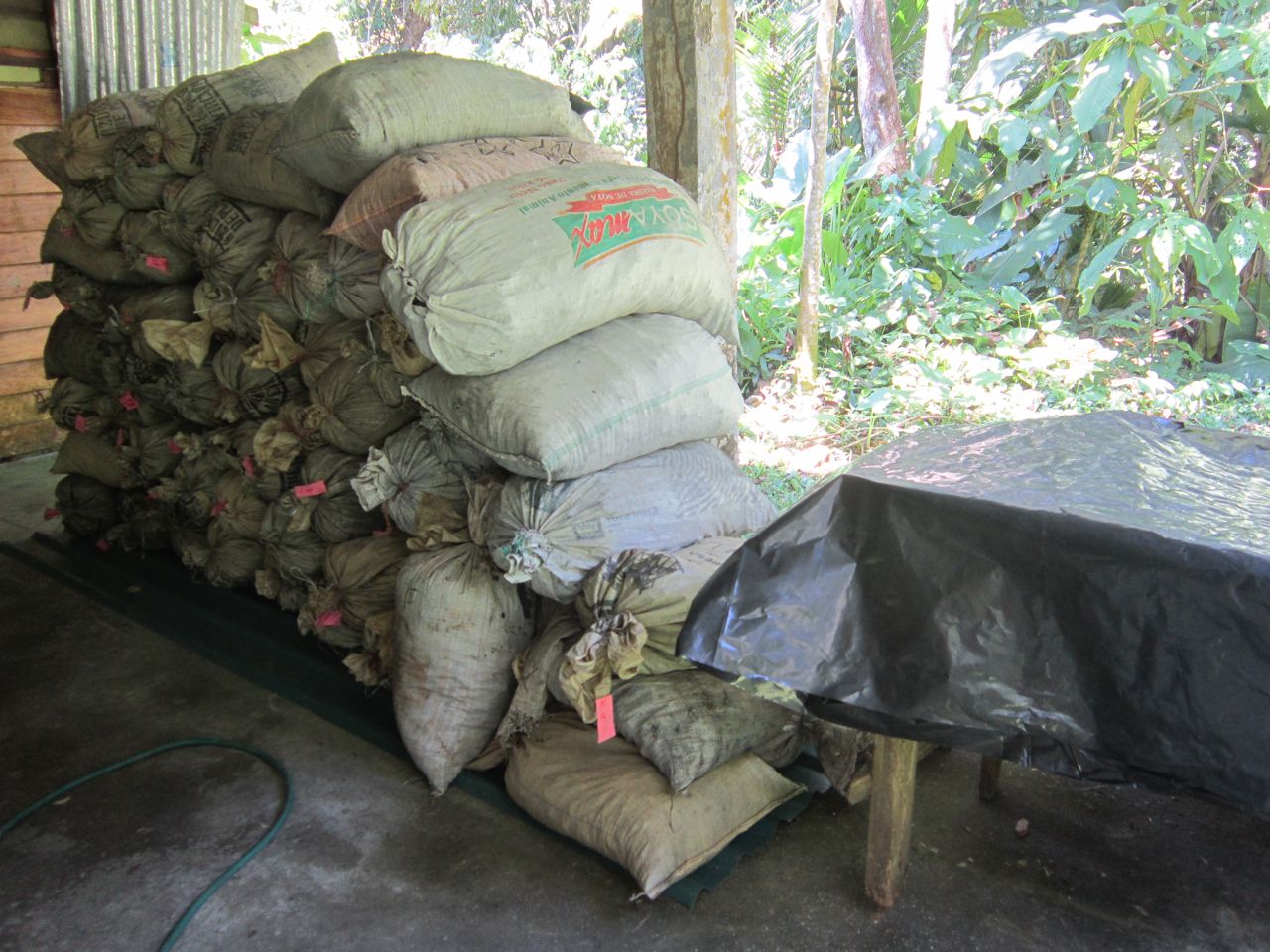 It has been an absolutely exhilarating ten days, since my MEPE bus rolled into Puerto Viejo. Yesterday E.F. promoter, Thierry Mangel and I conducted a biochar buy-back day in the Bribri communities of Amubri, Suiri and Sueretka. We worked closely with the organizers in each community and although it involved lifting and transferring approx. 1200 lbs of biochar from homes to truck, to boat, back to truck and then off-loading. It went great, everyone coordinated well. After stopping at APPTA to pick up the last 10 sacks of biochar that we had inventoried there. We off-loaded and dry stored 565 kilograms in 54 sacks. This gives us enough to meet the order which we have received from a researcher at CORBANA. http://translate.google.com/translate?hl=en&sl=es&u=http://www.corbana.c...