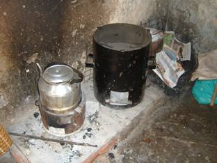 The Rocket stove was not in use when we arrived but the maid of the house assured us that the stove was being used frequently. She said that she was only now using charcoal today because she had run out of wood. Under normal circumstances she said that she would use about 150 shillings worth of wood per day (for approx 8 people) compared to approx. 300 Ush per day for charcoal.